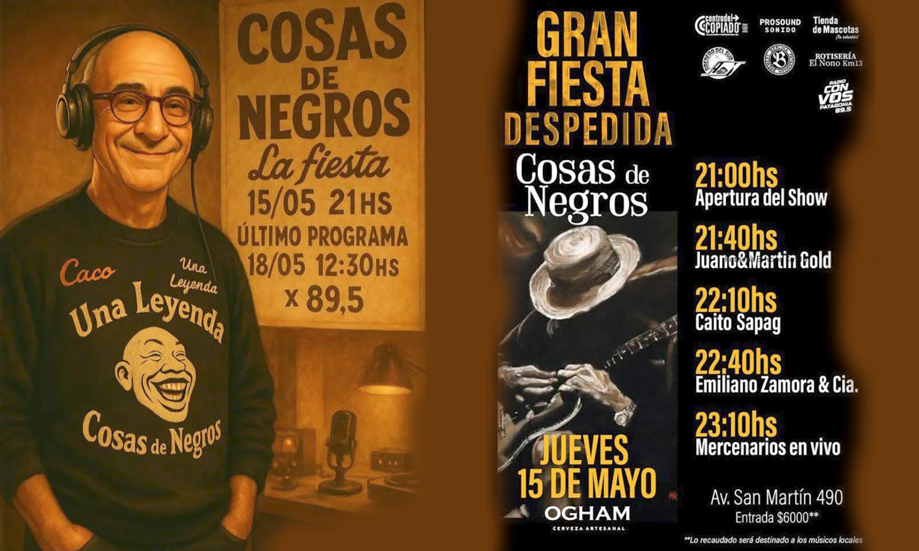 El jueves 15 en señor Beto Leone, dió vuelta la página a un hito de la música de blues en la Patagonia, desde hacía 35 años primero con el programa radial que enloqueció a todos y luego con sus insuperables shows en vivo con estrellas del mundo Nacional e Internacional, «Cosas de Negros» cerró un ciclo, que según palabras del mismo Beto, será definitivo, pero al entender de un humilde servidor, quien escribe estos párrafos, me cuesta creer…