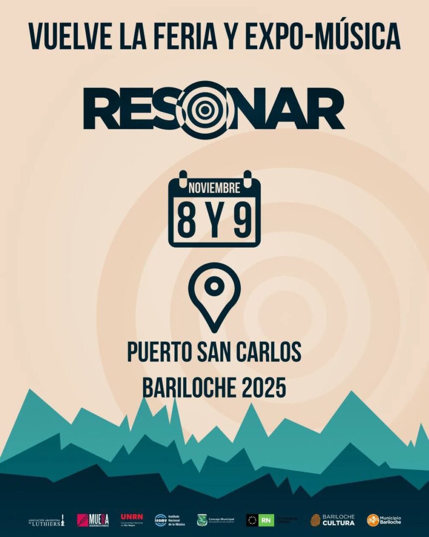 La música volverá a ocupar el centro de la escena en Bariloche con la llegada de RESONAR 2025, el encuentro que reúne a músicos, luthiers, técnicos, productores, escuelas, gestores y amantes de la música de la ciudad y la Patagonia Norte. Las actividades se desarrollarán el sábado 8 desde las 11hs y el domingo 9 desde las 13hs en el Centro de Arte, Ciencia y Tecnología (Puerto San Carlos), con una variada programación que incluirá recitales en la Usina Cultural del Centro Cívico.