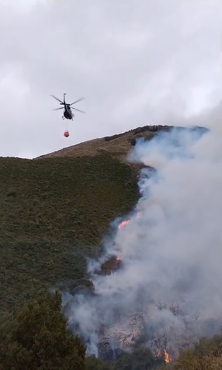 Es destacable la inmediata colaboración y trabajo del Servicio Nacional de Manejo del Fuego, que en tiempo récord, movilizó Helicópteros y Aviones, pese a las adversas condiciones meteorológicas, despachando 6 medios aéreos, siendo 4 Helicópteros y 2 aviones, que realizaron en conjunto más de 90 descargas.