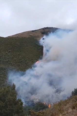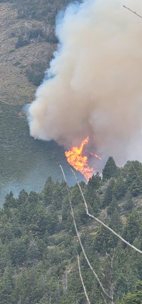 En la tarde de ayer se inició un incendio, presuntamente intencional, de proporciones, con una superficie aproximada de 1 hectárea, que se encuentra en una olla con exposición Oeste en el Cerro Meta, a unos 900 metros arriba de la Ruta Nacional 40, aproximadamente en el Km 2025.