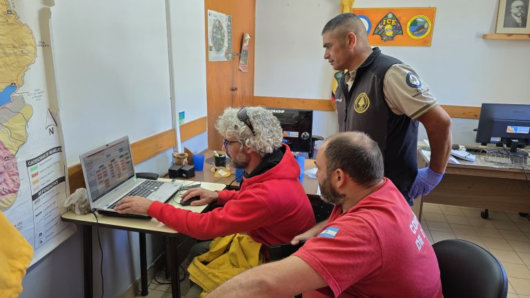 La jornada de ayer presentó un panorama complejo debido al ingreso de un frente frío con vientos de 30 a 40 km/h y ráfagas de 50 a 70 km/h. Este fenómeno intensificó la actividad del fuego en varios sectores, principalmente en la ladera noreste del Cerro Colorado y en el Cerro Donat, en dirección al istmo de los lagos Martin y Steffen desde Cascada los Alerces, donde se observaron columnas convectivas. Por la noche se registraron leves precipitaciones: 1,2 milímetros en Roca y 3,5 en Los Manzanos, que tuvieron un leve efecto sobre el combustible fino.