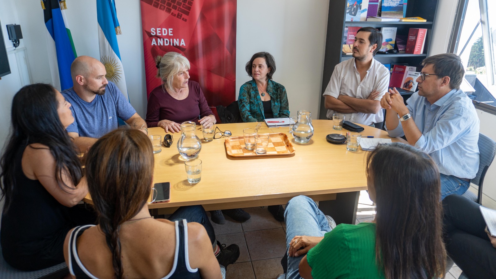 Por último, en el encuentro con Alicia Tealdi y Santiago Cámpora, de la Asociación Civil Teatrantes Bariloche, se conversó sobre la construcción del “Teatro Público” y la posibilidad de articular acciones con las carreras de Arte Dramático y Teatro, incluyendo el uso de espacios y la organización de actividades conjuntas.