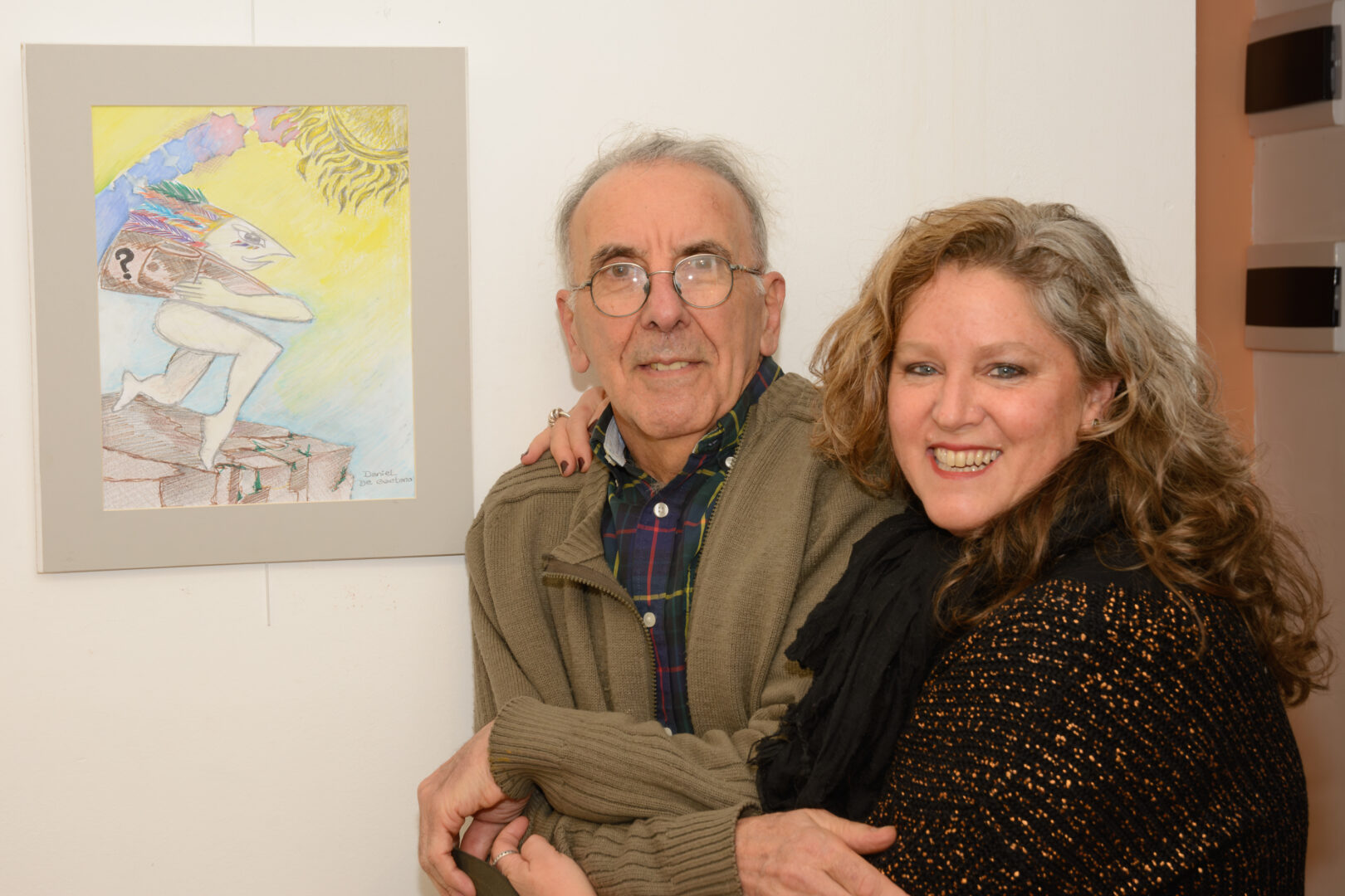 Daniel De Gaetano junto a su obra «El loco» y acompañado por Paula Fischer.