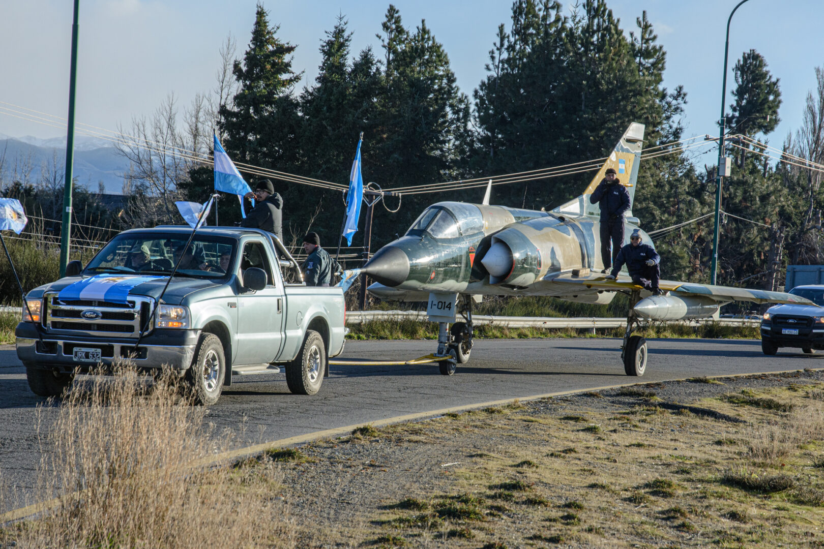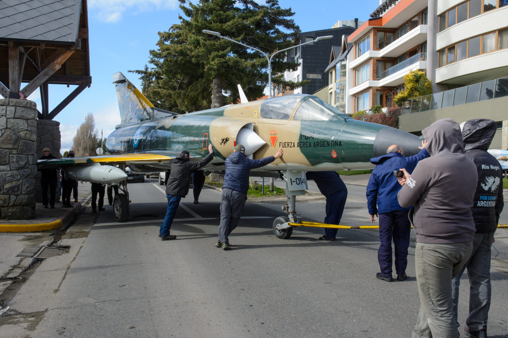 Coronando este trabajo el Mirage III EA, que, con sus 16 incursiones de combate sobre las fuerzas inglesas, nos permitirá vivir desde su silencio metálico, el sudor, la tensión, la valentía y entrega que su tripulación destilaba en cada vuelo; hoy el recorrido desde el aeroclub hasta su destino final el Memorial donde quedará emplazado fue una fiesta para los vecinos y turistas que se dieron cita para verlo llegar. No fue fácil, sus poco más de 8 metros de envergadura obligaba al equipo que lo transportaba hacer peligrosas maniobras para no golpear nada, no dañarlo ni poner en riesgo el trabajo.